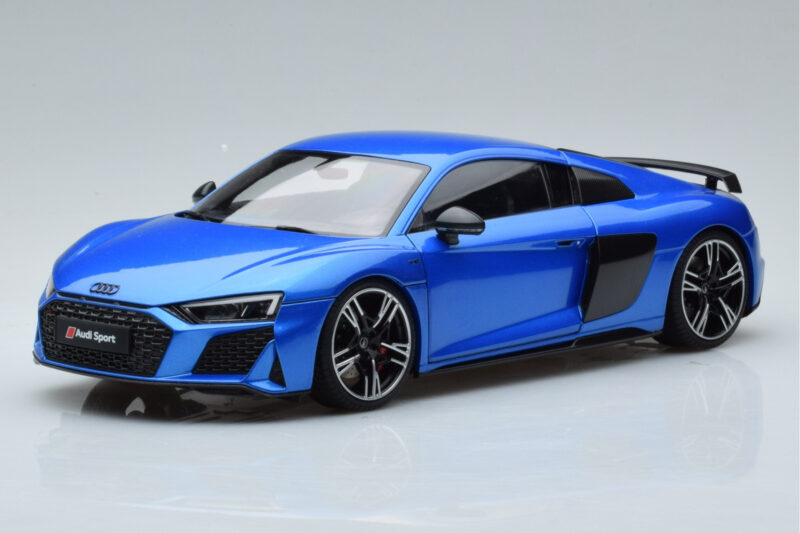 A 1:18 scale model measures approximately 25-28 cm (approximately 10-11 inches). The Audi R8 Performance Blue Kengfai 1:18 is perfect for display in a glass cabinet or on a shelf.