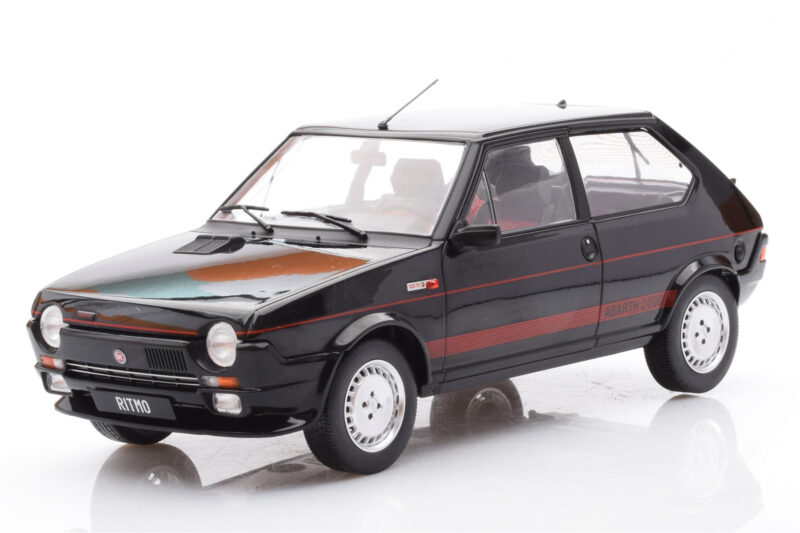 A 1:18 scale model measures approximately 25-28 cm (approximately 10-11 inches). The Fiat Ritmo TC 125 Abarth Black MCG 1:18 is perfect for display in a glass cabinet or on a shelf.