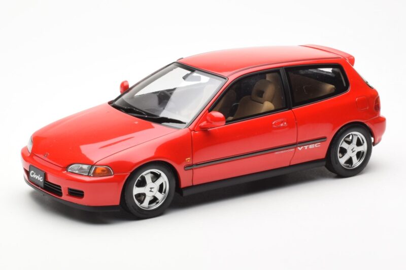 The Honda Civic EG6 VTEC Red LCD 1:18 is crafted from Diecast. Die-cast zinc alloy body with detailed plastic parts, rubber tires, and high-quality paint finish. Die-cast models are known for their weight, durability, and realistic feel.