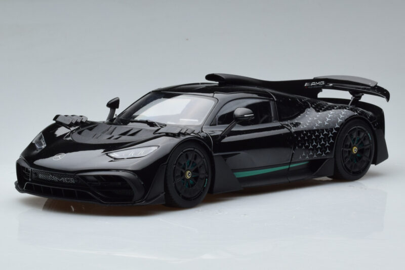 The Mercedes AMG One Black NZG 1:18 is crafted from Diecast. Die-cast zinc alloy body with detailed plastic parts, rubber tires, and high-quality paint finish. Die-cast models are known for their weight, durability, and realistic feel.
