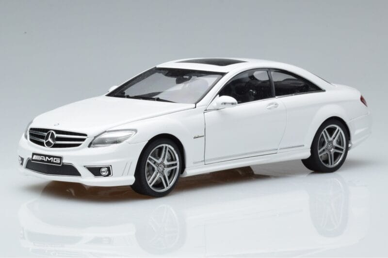 The Mercedes CL63 AMG C216 White AUTOart 1:18 is crafted from Diecast. Die-cast zinc alloy body with detailed plastic parts, rubber tires, and high-quality paint finish. Die-cast models are known for their weight, durability, and realistic feel.