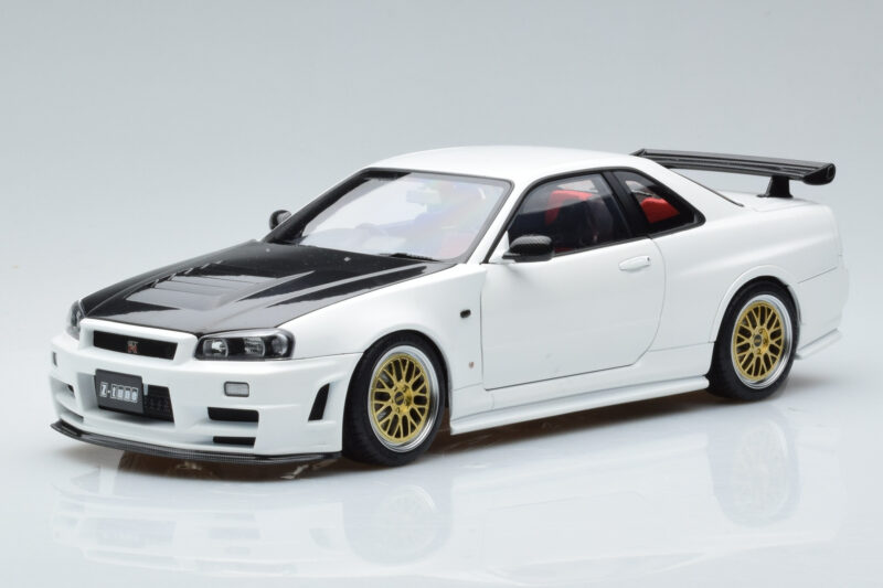 The Nissan Skyline GT-R R34 Nismo Z-Tune White MotorHelix 1:18 is crafted from Diecast. Die-cast zinc alloy body with detailed plastic parts, rubber tires, and high-quality paint finish. Die-cast models are known for their weight, durability, and realistic feel.