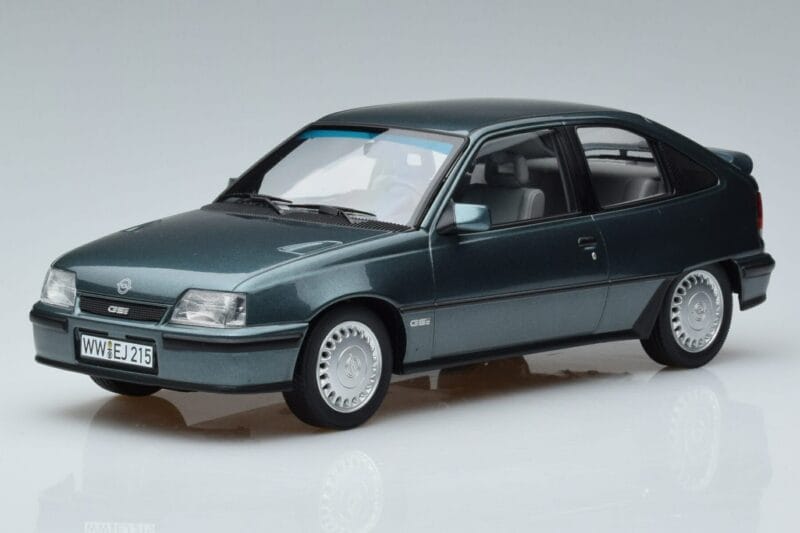 The Opel Kadett E GSi Blue Metallic Norev 1:18 is crafted from Diecast. Die-cast zinc alloy body with detailed plastic parts, rubber tires, and high-quality paint finish. Die-cast models are known for their weight, durability, and realistic feel.