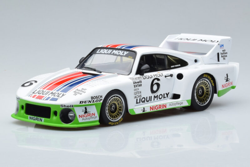 The Porsche 935J #6 Liqui Moly Spa-Francorchamps DRM 1980 MCG 1:18 is crafted from Diecast. Die-cast zinc alloy body with detailed plastic parts, rubber tires, and high-quality paint finish. Die-cast models are known for their weight, durability, and realistic feel.